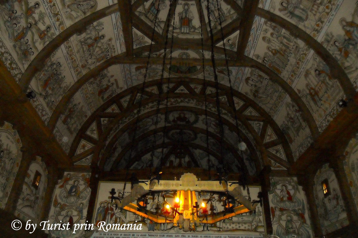 Pe bolta naosului se pot admira scene ample precum: Soborul Arhanghelilor, Înălțarea Sf. Ilie, Înălțarea Fecioarei Maria, Scara lui Iacov flancate de cei patru Evangheliști, iar deasupra, Dumnezeu Tatăl și Isus.