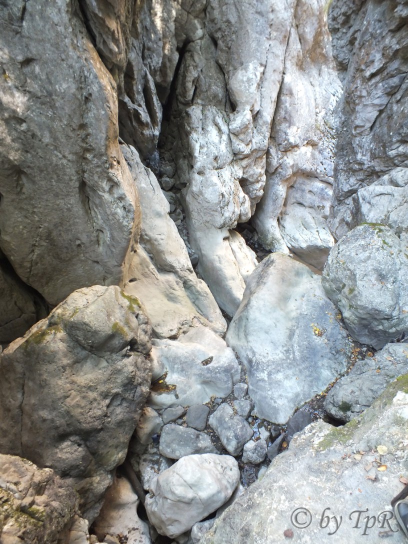 Peretele înalt de calcar din partea estică de culoare alb-gri e brăzdat de dungi de culoare vânătă lăsate de scurgerea apelor de precipitații. Aceste dungi vinete au dat locului denumirea de Vânătarile Ponorului.