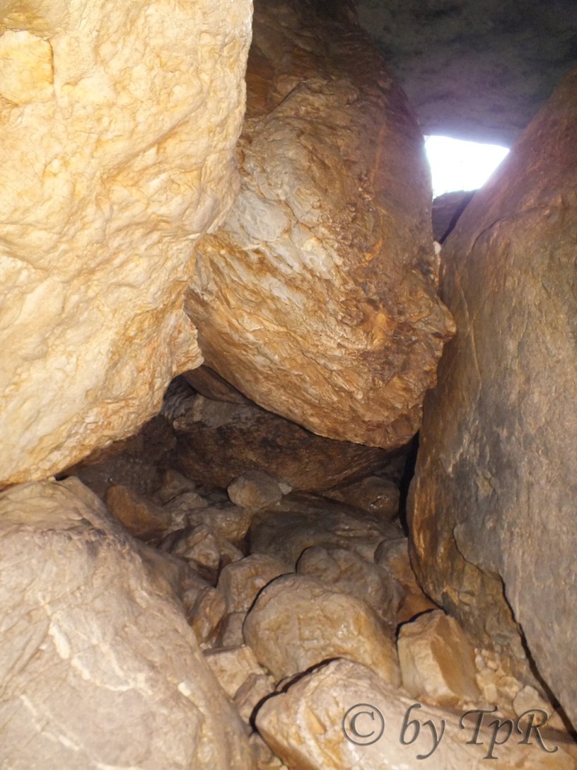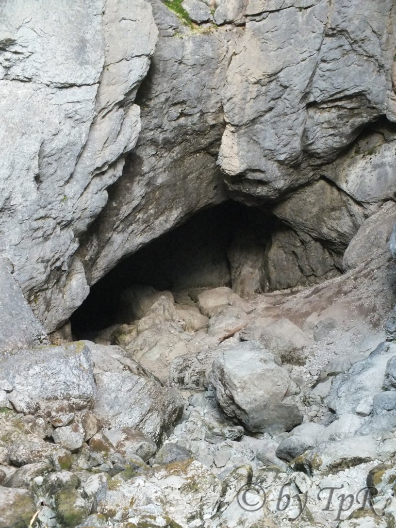 După ce se trece de zona luminată natural prin spărturile celor trei doline, în galeria peșterii mai apar două izbucuri puternice de apă. Este apa care s-a pierdut în Poiana Ponor. Apoi se pătrunde în zona dificilă unde bolovani și trunchiuri de copaci clădesc baricade peste care apa formează cascade si vâltori. Pentru înaintare se folosesc tehnici alpinistice și bărci de cauciuc. Prima sală, ușor alungită are în partea superioară o galerie fosilă de 300 metri. Urmează Sala Taberei, o verticală și primul lac navigabil. Se trece o nouă baricadă, lacul al doilea și o galerie impresionantă de 70 m înălțime ce duce la lacul 3 și 4. Sifonul sau lacul 5 ce urmează se poate trece pe sus, printr-o galerie fosilă după care urmează lacul 6 lung de 85 metri.