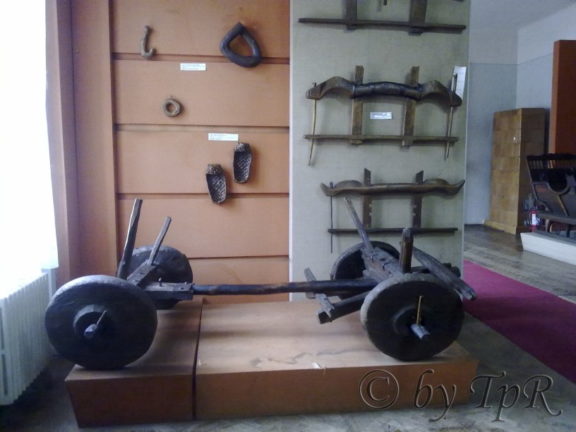 Sala cea mai impunatoare a muzeului a fost rezervata transporturilor. Celebritatea o detine carul din lemn pentru transportul vinului din zonele viticole ale Moldovei, piesa datata la sfarsitul secolului al XVI-lea si inceputul celui urmator.