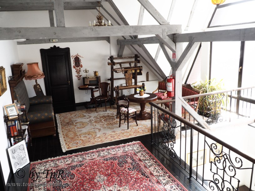 De la recepție, te întâmpină aerul de înaltă clasă. Holurile sunt mobilate cu piese originale (un dulăpior vechi de medicamente, un balansoar din piele) iar pereții împodobiți discret cu picturi încadrate de rame vechi, care aduc aminte de natură, verde, tradiție românească. Impresionantă este tapițeria care îmbogățește peretele scării către etajul unu. Mereu proaspete, florile de primăvară sunt nelipsite pe holuri, la recepție și în restaurant. Vitrinele cu veselă din porțelan, un pian vechi în perfectă stare de funcționare, un cufăr vechi și oglinda pe care se întrevede patina vremurilor completează tabloul interiorului cu acces general. Trecerea către spațiul destinat restaurantului este continuă, păstrându-se linia de vintage. Mici detalii fac deliciul capricioșilor: recipientul pentru cafea și cel pentru ceai, fotografiile vechi care acoperă discret porțiuni din pereții interioarelor, perdelele de culoarea untului cu dantelă discretă, lustrele, lămpile de gaz. Un raft în restaurant expune produsele proprii. Borcanele de gem îți fac poftă doar privindu-le. Totul … un ansamblu de bun gust, calitate și rafinament.