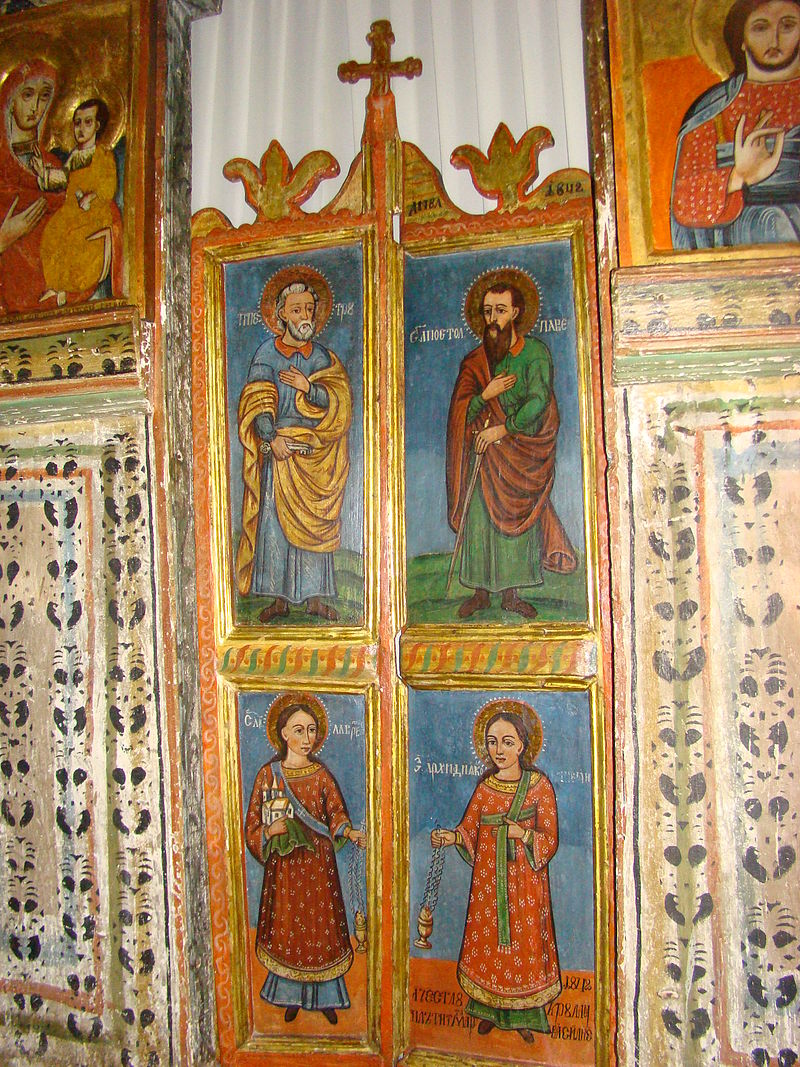 Ușile împărătești sunt simple, din lemn, pictate și se poate vedea anul picturii, 1844. Biserica a fost renovată în anii 2000-2001.