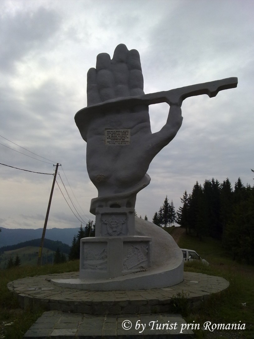 Monumentul Palma din Pasul Ciumârna a fost construit din fier, beton armat şi materiale folosite în construcţii. Acesta are o înălţime de şapte metri şi reprezintă o mână, simbolul muncii şi al forţei, mână care este îndreptată spre cer. În jurul mâinii apare vântul care are la capăt un pod. În mijlocul mâinii se află o placă de marmură pe care este gravat mesajul: