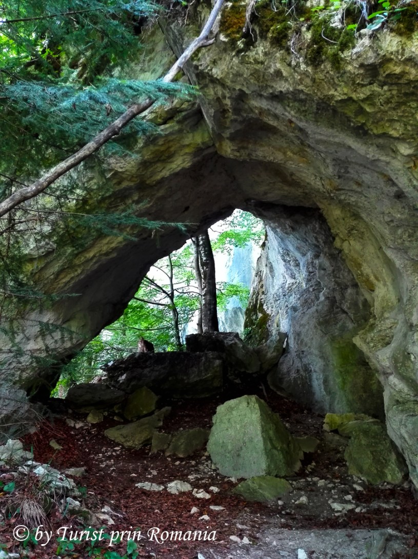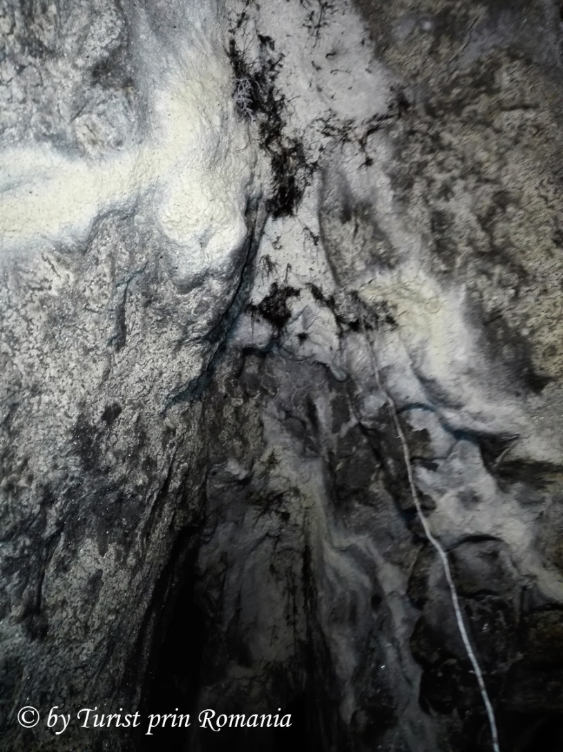 Aceasta este priveliștea de care am avut parte. Am intrat ghemuiți în peșteră. Podeaua alunecoasă ne făcea fiecare pas nesigur. Aerul umed ne intra în plămâni. Un liliac deranjat de lumina lanternei se izbește de picior, încercând să iasă din peșteră, se cuibărește în altă crăpătură a peșterii.