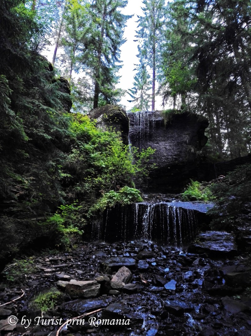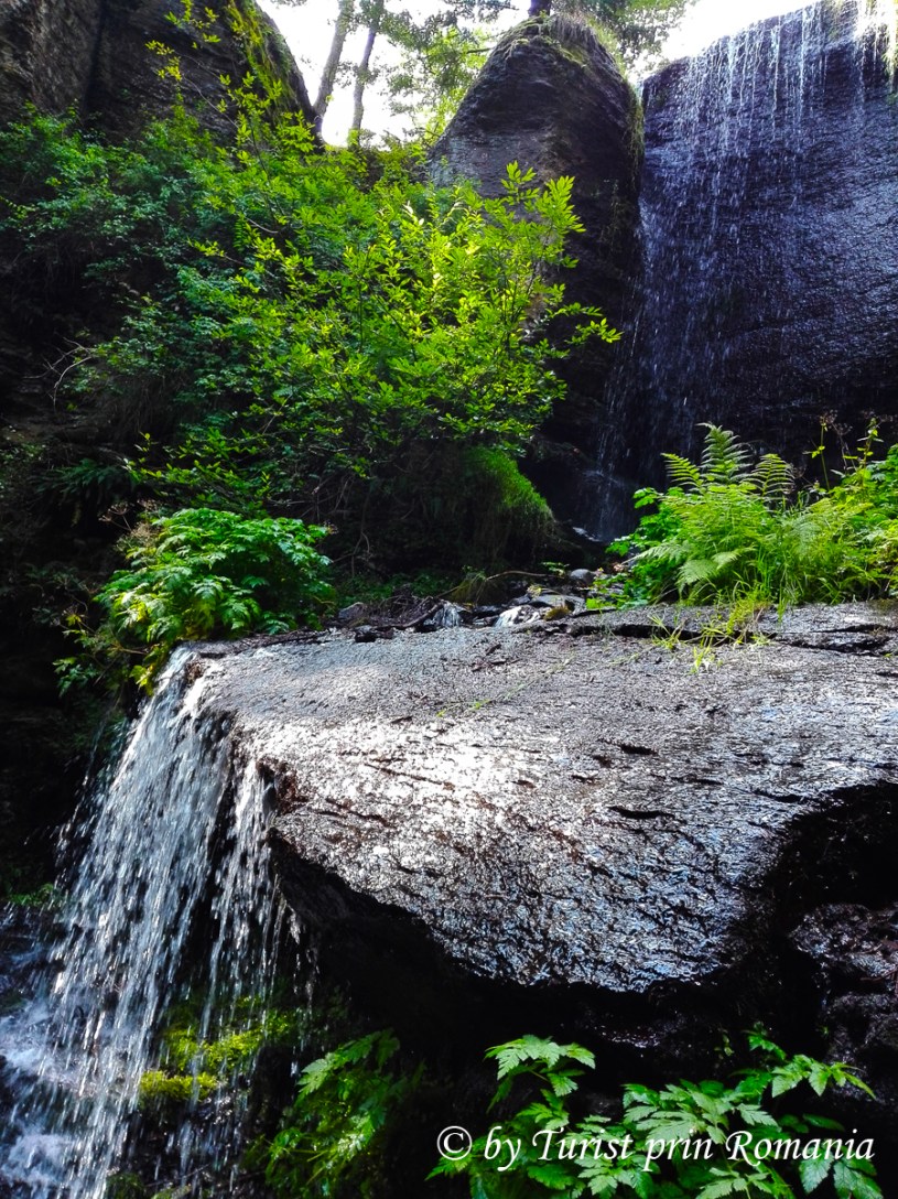 Cascada Secuilor ni se arată. Căderea de apă este în trepte, de la o înălțime de 6 – 7 metri. Stropii nebuni fac perdele efemere printre stânci și se prăvălesc în gol, adunându-se și împrăștiindu-se din nou și din nou. Crăpăturile și pervazurile tip scară din stânci ne ușurează urcușul. Acolo, sus, perspectiva se dezvăluie în toată splendoare ei.