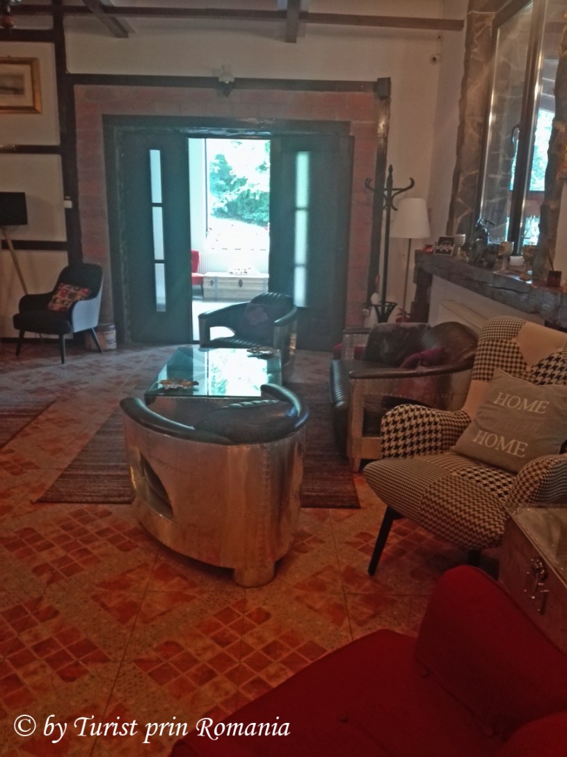 În fața Pensiunii Hunter Vip ești întâmpinat de o terasă frumos decorată și mobilată cu bun gust. Fiecare detaliu al decorului impresionează, lăsând impresia unui spațiu în care nimic nu este la voia întâmplării. Florile, luminile, mesele, scaunele, fotoliile și canapeaua, toate inspiră privitorul. Ești transpus, parcă, într-un univers ce are ca unică menire crearea unei atmosfere sensibile, de bun gust. La intrare te întâmpină recepția cochet amenajată, în ton cu exteriorul. Urcăm scările către camere și, din nou, micile detalii decorative îmi atrag atenția: aici un scaun art deco, colo o servantă cu sertare.