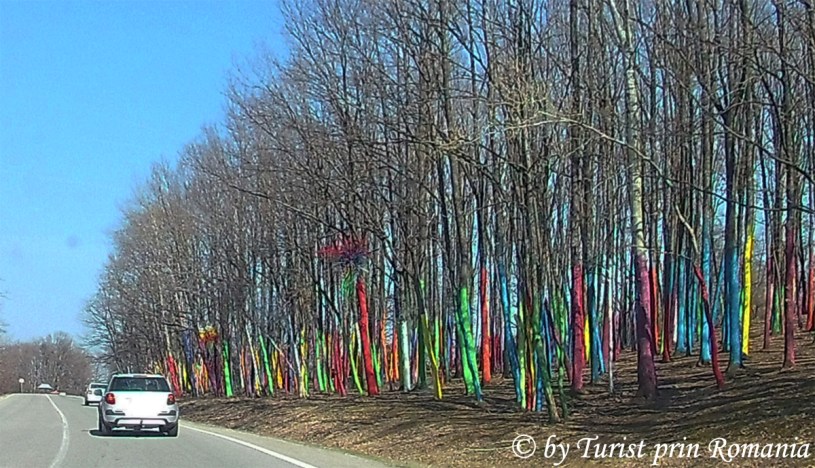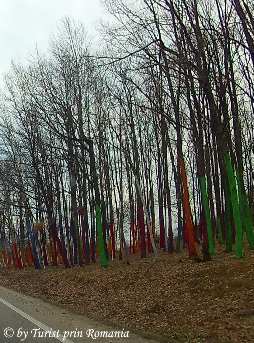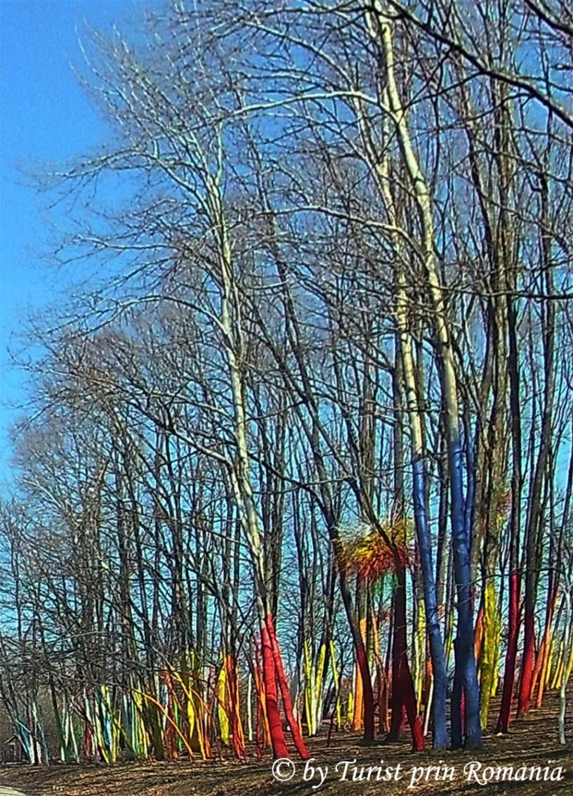 Pe DN67, între Horezu şi Târgu Jiu, fă un popas în Pădurea colorată. Este o manifestare artistică a gorjeanului Mihai Țopescu. Este protestul său împotriva defrișării ilegale a pădurilor. Este exprimarea revoltei unui artist care își amintește din copilărie cum pădurarul marca cu vopsea roșie copacii ce urmau a fi tăiați, copacii condamnați la moarte. Pădurea colorată este revolta copilului ce nu înțelegea de ce trebuie uciși copacii și nu pot fi lăsați să moară liniștiți.