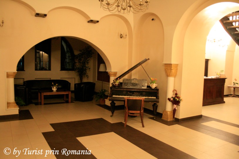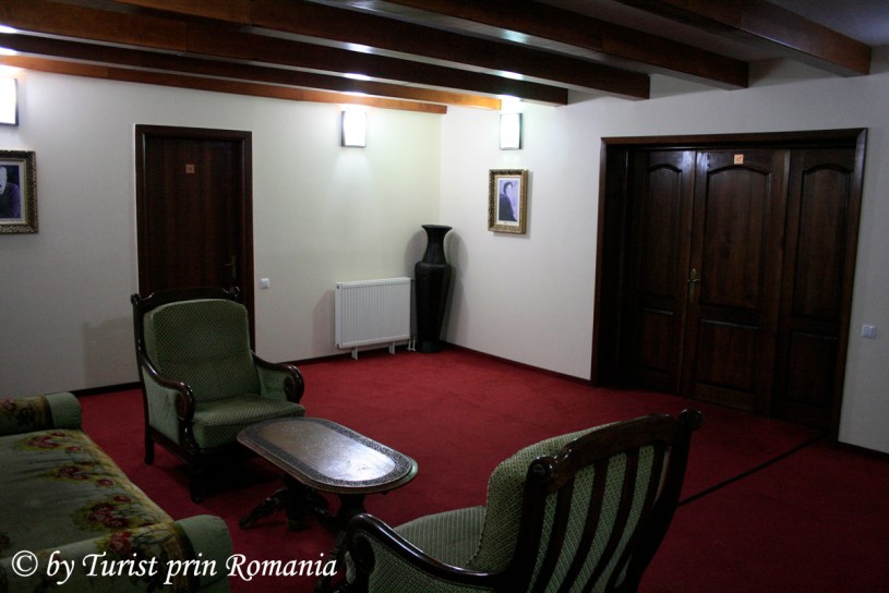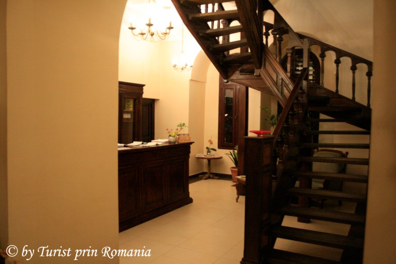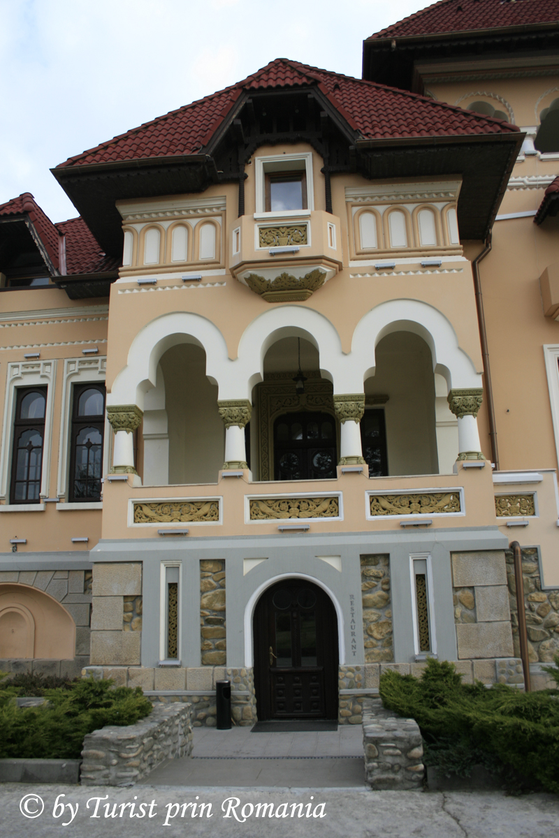 Clădirea în care am fost cazați se află către capătul unei alei impozante. Parcă îți și imaginezi caleștile elegante trase de cai mândri și focoși mergând țanțoși către intrarea conacului. Intrarea este impunătoare și imaginea clădirii respiră prin toți porii stilul în care a fost construită: stilul arhitectural brâncovenesc.