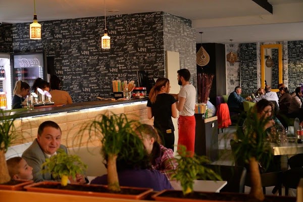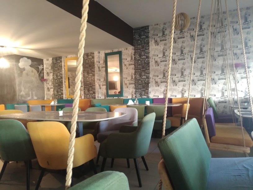 - Atmosfera din interior este dată de aranjamentul mobilierului modern chic, culorile acestuia și accesoriile, toate acestea completate fiind de iluminarea sălii și muzica în surdină care creează starea de relaxare, de bine, de … bine ai venit. Culorile pastelate ale mobilierului și tapetul dau un aer tineresc și vioi atmosferei din interior. Astfel, te simți în largul tău, din start, te simți bine venit și revigorat într-un loc modern și elegant.