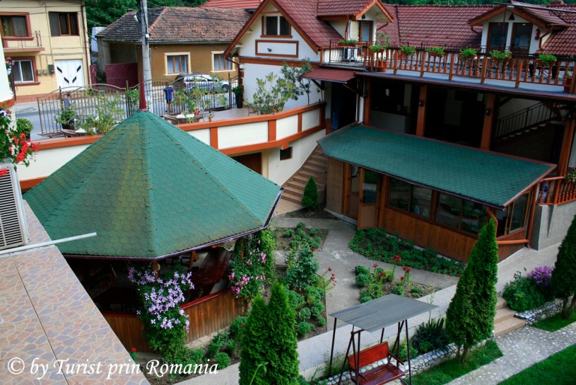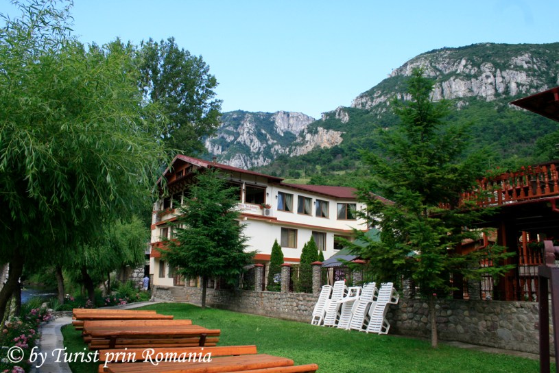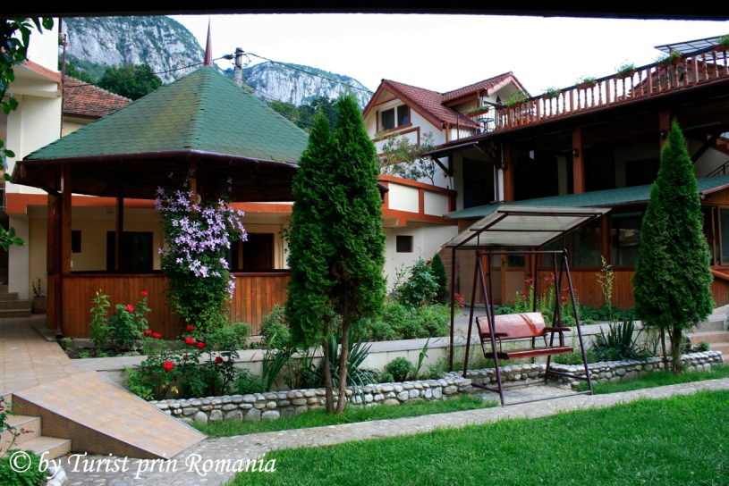 În curtea interioară un foișor acoperit foarte spațios își face simțită prezența cum comori scările către Cerna. O pajiște verde cu șezlonguri îți dă de știre că aici poți face plajă fără să fii deranjat de nimeni.