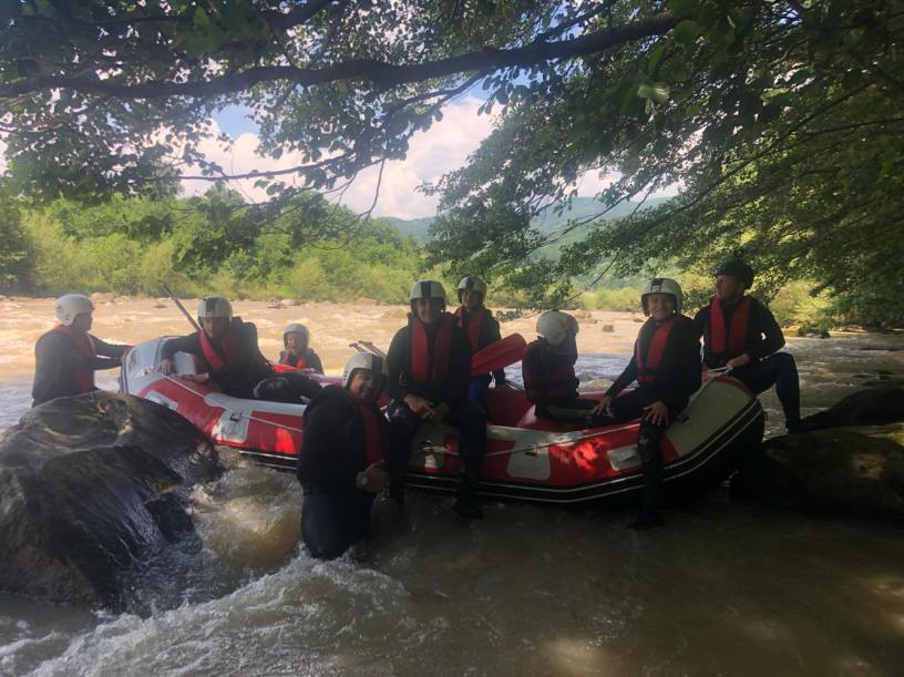 După finalizarea turei, participanţii sunt transportați cu microbuzul la baza de rafting, unde pot face un duş şi se pot schimba.
