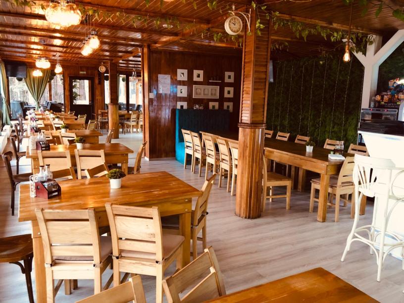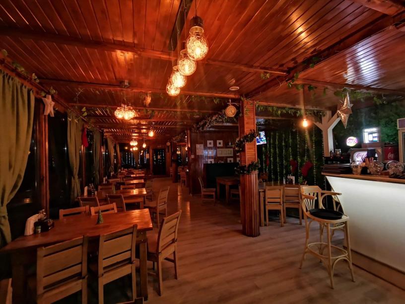 Atmosfera de verde, de bună dispoziție este asigurată atât de natura care înconjoară restaurantul cât și de elementele interioare de decor. Jocul dintre culoarea lemnului natural al mobilierului, verdele unor pereți acoperiți de vegetație și mici accesorii verzi, în ghivece sau atârnate se constituie într-un tot, într-un complet.