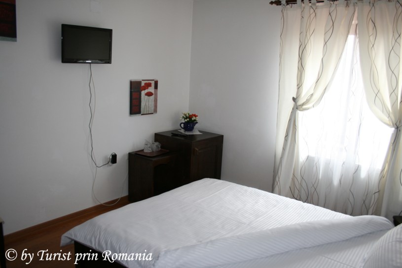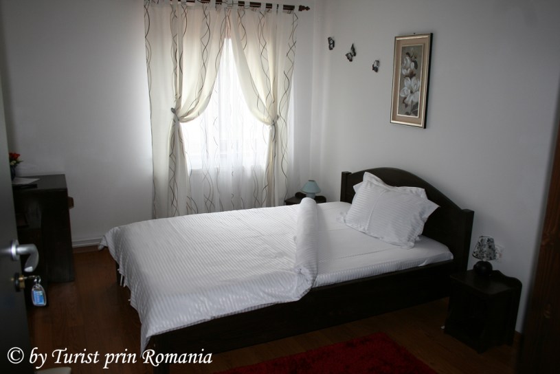 Mobilierul din lemn masiv contrastează cu albul așternuturilor și cremul draperiilor și al perdelor, creând senzația de confort și de căldură, de relaxare, de vacanță. De la fereastră, totul este verde și respiri aer curat de vacanță și de relaxare totală.