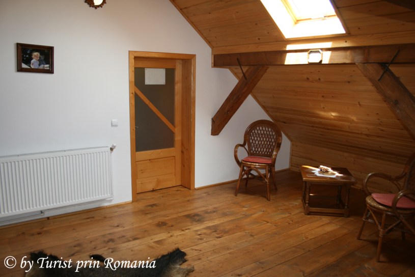 Urcăm la primul etaj şi găsim primele camere, mari şi aerisite, foarte curate, organizate în aşa fel încât să ai parte de spaţiul care îţi asigură confortul necesar. Atmosfera este foarte calmă şi relaxantă, lemnul şi culorile alese fiind în perfectă armonie cu mediul înconjurător.