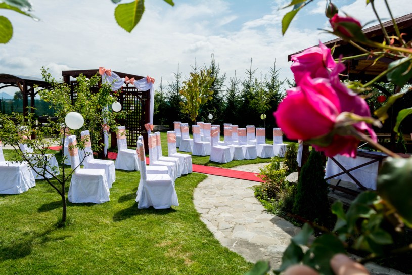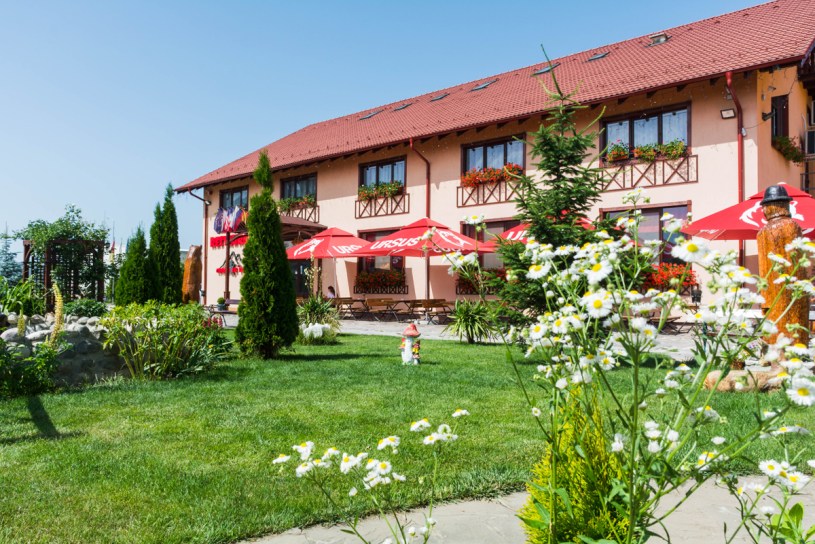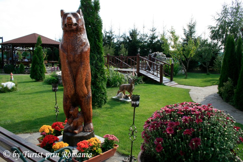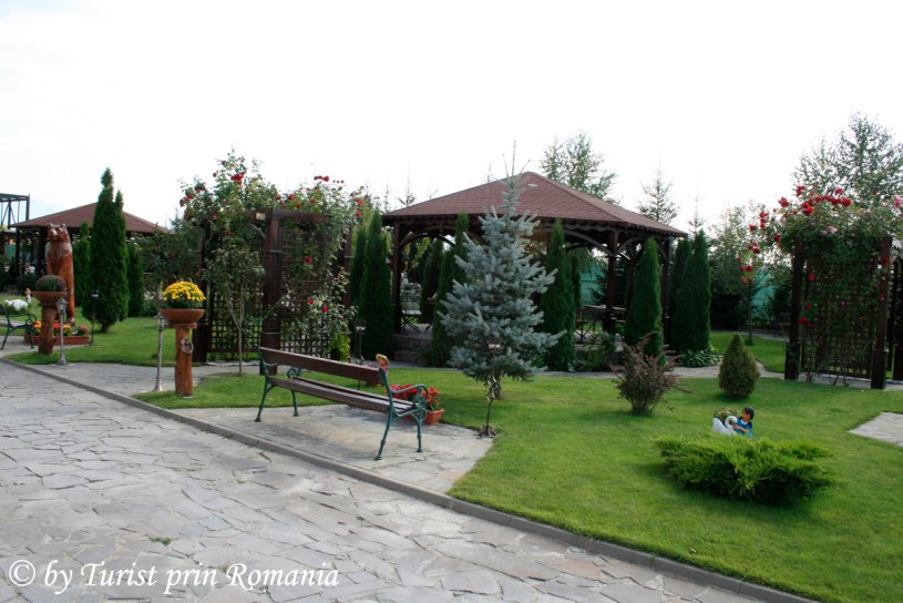 După câteva minute de condus, Google Maps m-a dus fix în curtea conacului, distanța dintre muzeu și restaurant fiind de aproape 2 kilometri. Am fost întâmpinat de o grădină imensă decorată mai mult decât natural cu un iaz în mijloc, un podeț din lemn și câteva foișoare unde îți este mai mare dragul să stai și să servești ceva, în liniște, în mijlocul naturii.