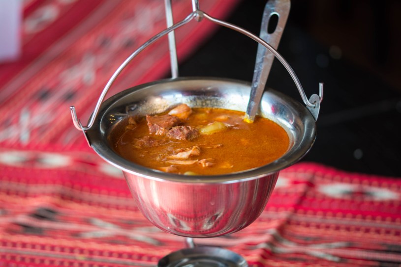 Am cerut un gulyas sau gulaș, o cafea și o apă. Imediat mi-a fost adusă cafeaua și apa. Am mai așteptat puțin și a venit și tradiționalul gulaș, frumos prezentat și servit în ceaun, cu polonic, pe trepied de metal. Servirea impecabilă, ospitalitatea la același nivel, iar atmosfera locului relaxantă. Mi-am pus primul polonic, de gust. Am rămas absolut înmărmurit! Anul trecut am fost în toată Harghita, iar anul acesta în Covasna, dar … asemena arome și mirosuri nu mi-au fost date să le cunosc până la Conacul lu’ Bebe.