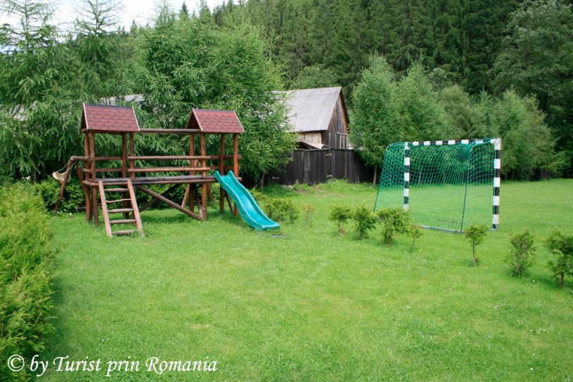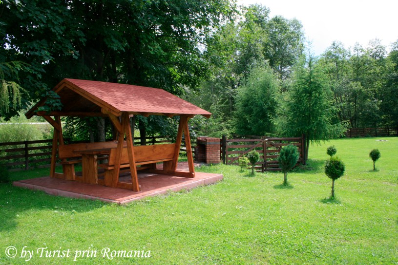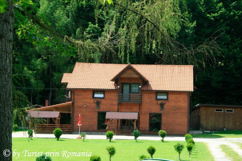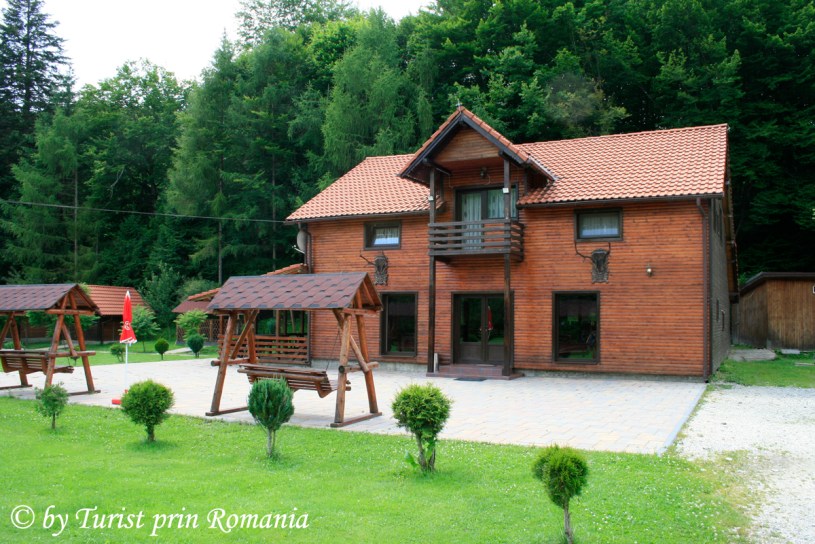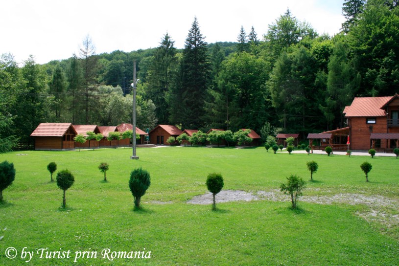 M-am oprit chiar la intrarea în curtea cabanei și am admirat câțiva ulii care dădeau târcoale locului în căutare de hrană. Susurul râului, liziera pădurii și cabanele din lemn din curte se îmbinau armonios în faptul serii. Am numărat 6 cabane din lemn, o sală pentru servit masa și un corp central de clădire.