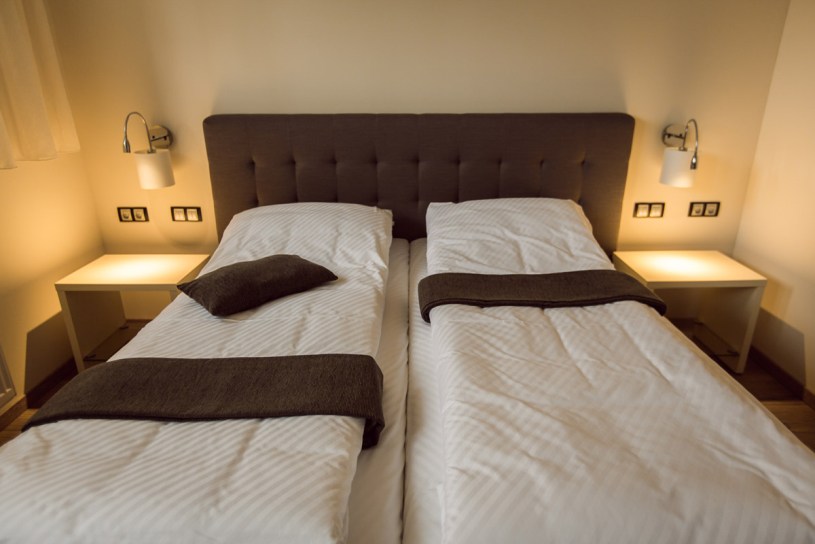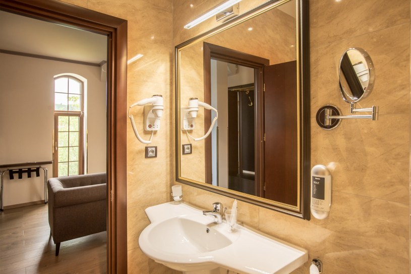 Camerele sunt mobilate modern. Atmosfera aristocratică, aproape, ce domină camerele este dată de jocul cromatic al culorilor lemnului mobilierului și al accesoriilor ce îmbracă discret camera.