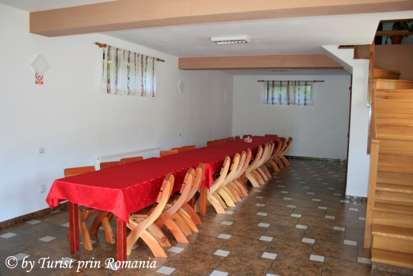 Am luat o gură de cafea și am trecut la explorarea locației. Am intrat într-o sală de servit masa imensă. O masă din lemn masiv era protagonista principală, aia, în sala de mese a Pensiunii Georgiana și Gabriel, iar scaunele stăteau cuminți aranjate, așteptând parcă să se constituie în confortul cuiva.