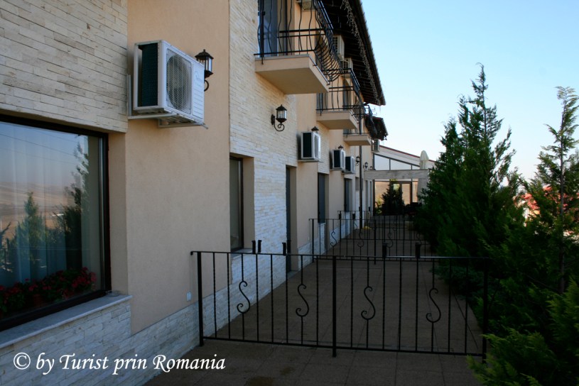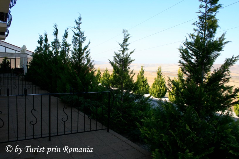 Am fost întâmpinați de recepționeră, apoi, și-a făcut apariția și proprietarul și administratorul hotelului. Am servit o cafea excelentă pe terasa cu vedere către Râpa Roșie și am stat puțin la povești.