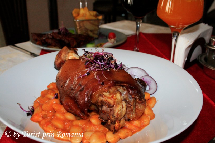Am acceptat invitația și datorită senzației de foame, dar și curiozitatea a fost foarte mare. Astfel, ne-am delectat cu un ciolan afumat cu fasole uscată și o coastă de porc cu sos barbeque, preparate pentru care ținem să mulțumim celor doi chefi de la Hotel Axa.