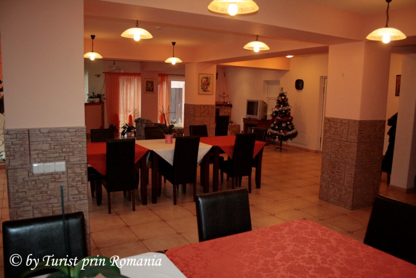 Am intrat într-o parcare care putea adăposti cu lejeritate cel puțin 10 mașini și am intrat în clădire. Am dat de un restaurant cu aproximativ 30 de locuri, un brad frumos împodobit și un șemineu care radia o căldură foarte plăcută.
