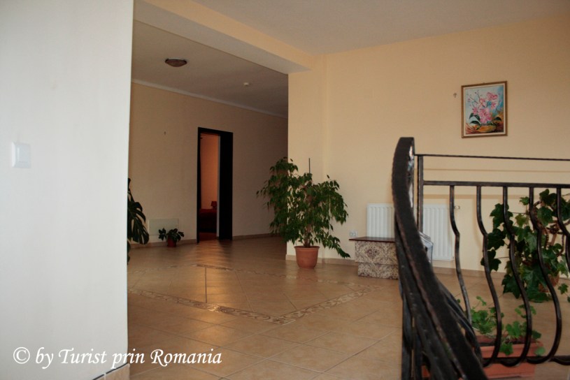 Am urcat să văd cum arată camerele și, în primul rând, am rămas foarte surprins de spațiul imens de care se bucură oaspeții cazați aici. Un hol decorat cu flori și foarte bine încălzit și luminat înlesnește accesul către camere.