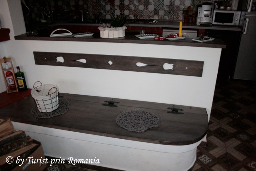Bucătăria open space avea toate dotările necesare, de aici nelipsind mașina de spălat vase, vesela și toate cele necesare pentru ca unei gospodine să nu-i lipsească nimic.