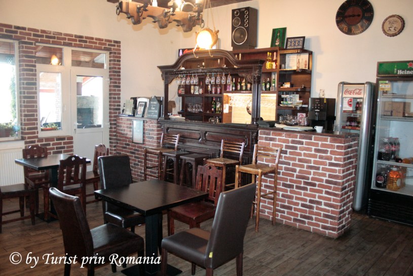 Am intrat în bar, apoi, o sală predominant ornamentată cu lemn, cu mese din lemn masiv și un bar unde se puteau găsi băuturi pentru toate gusturile.