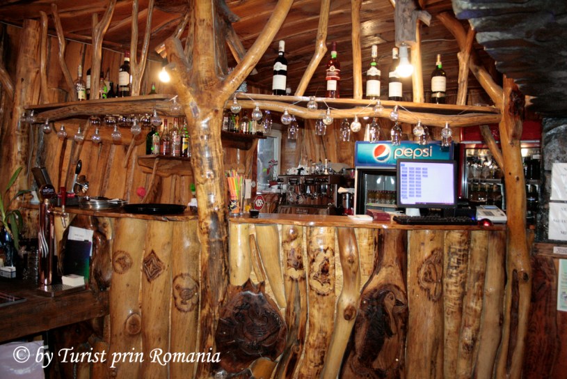 Cea în care am intrat prima oară cu o capacitate de 150 de locuri prevăzută cu mese din lemn masiv pirogravate cu motive tradiționale, o sală de aproximativ 60 de locuri,