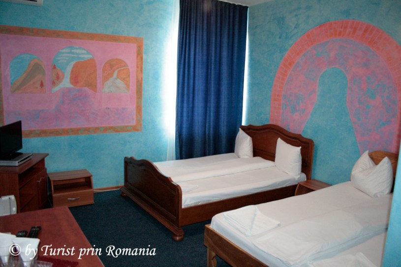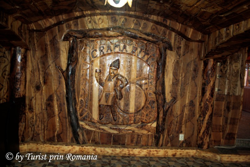 restaurantul propriu zis și o sală mai mică de 30 de locuri pe care eu am numit-o sala domnitorilor, pentru că în fiecare întrând există pirogravat în lemn chipul câte unui domnitor.