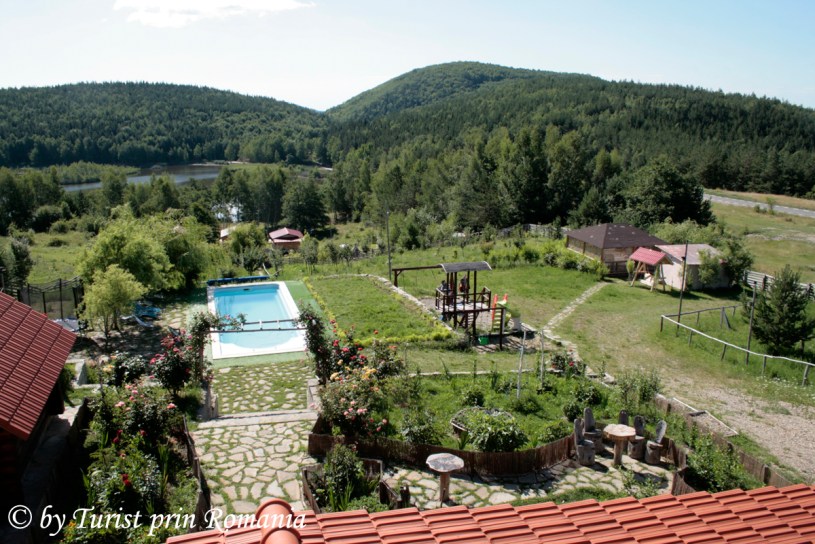 Din drum, am văzut o clădire din lemn, construită din bușteni, cu un steag fluturând mândru la unul dintre balcoane. O poartă din lemn marca intrarea în curtea Agropensiunii Lacul Zânelor. Trandafirii erau încă înfloriți iar primele raze ale soarelui scăldau apa cristalină a piscinei într-o lumină blândă și ospitalieră.
