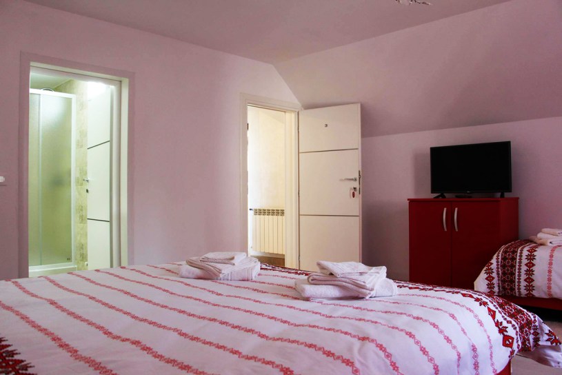 Camerele sunt aerisite și foarte bine optimizate în așa fel încât să ai parte de confort maxim. Cuverturile cu motive tradiționale îți reamintesc de faptul că te afli într-o zonă unde tradiția este păstrată cu sfințenie.