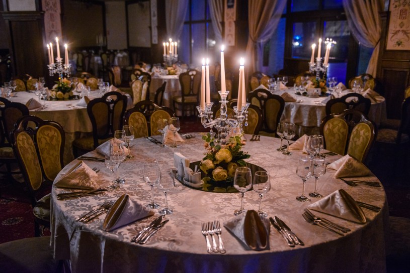 Candelabre generoase, scaune sau fotolii comode, mici aranjamente florale, cu flori naturale, tablouri sau aplice. Detaliile decorului interior sunt cele care punctează cu efect eleganța locației.