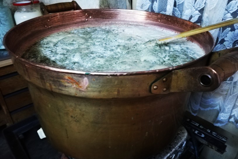 Se pune laptele proaspăt, amestecat cu puțin lapte acru în borcane și se lasă la fermentat circa 6 săptămâni. Apoi, laptele fermentat se pune într-un ceaun de cupru și se amestecă cu pătrunjel. Proporția este 1,5 kg de pătrunjel la 30 de litri de lapte. Amestecul astfel format se lasă la fiert, la foc foarte mic, aproximativ 8 până la 10 ore.