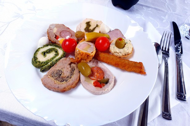 Dintre mâncărurile care pot fi degustate aici pot să amintesc celebra ciorbă de fasole în păine cu afumătură și ceapa roșie, friptura de pui cu garnitură de sfeclă și salată verde sau platourile reci tradiționale.