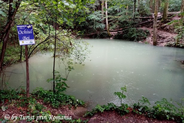 Lacul Ochiul Beiului se află la o altitudine de 310 metri, iar forma lacului este cea a unui crater cu adâncimea de 3,6 metri. Este monument al naturii protejat și despre el se spune că are apa atât de curată încât se pot admira păstrăvii care înoată în el. O altă caracteristică a Lacului Ochiul Beiului este că nu îngheață niciodată. Tot timpul anului temperatura apei rămâne constantă având între 4 și 8 grade Celsius. Apa lacului este împrospătată mereu de un izvor. Se spune că acest fapt face ca păsările migratoare, stârci cenușii ori rațe sălbatice, rămân aici peste iarnă.