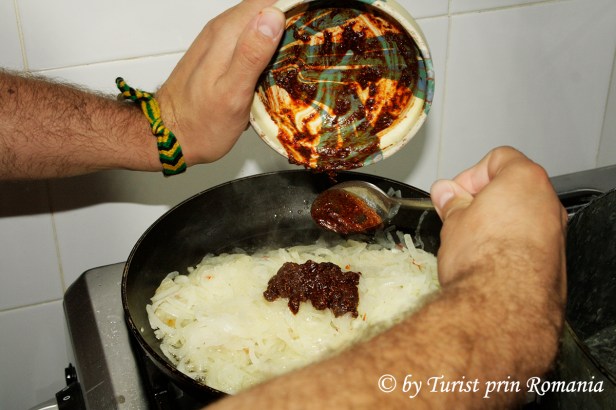 Într-o tigaie Dani a călit ceapa tăiată foarte subțire, până a început să-și schimbe culoarea și să se înmoaie puțin. După ce s-a frăgezit ceapa, a turnat mirodeniile peste ceapă care au început să se omogenizeze, apoi a luat tigaia de pe foc și a trecut la următoarea etapă, prepararea aluatului pentru pâine.
