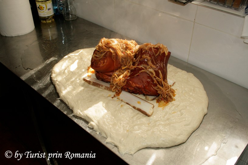 Peste slănină, Dani a pus ciolanul, peste care a turnat mixul de mirodenii cu ceapă și apoi a închis aluatul deasupra.