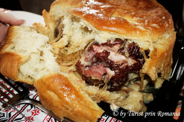 Ce să vă povestesc!!! Aromele care au umplut încăperea și mirosul lăsat în aer în timpul preparării ciolanului afumat în aluat de pâine sunt o motivație în plus pentru graba cu care am dorit să mă așez la masă și să savurez acest delicios preparat. Ciolanul afumat în aluat de pâine a fost completat cu niște cartofi țărănești și atunci se poate spune că s-a obținut un tradițional ciolan în pâine așa cum numai la Pensiunea La Pătru se poate mânca.