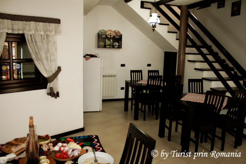 Sala de luat masa este spațioasă iar căldura încăperii și mirosurile îmbietoare ale bucatelor fac din acest spațiu unul foarte îndrăgit de toți turiștii.