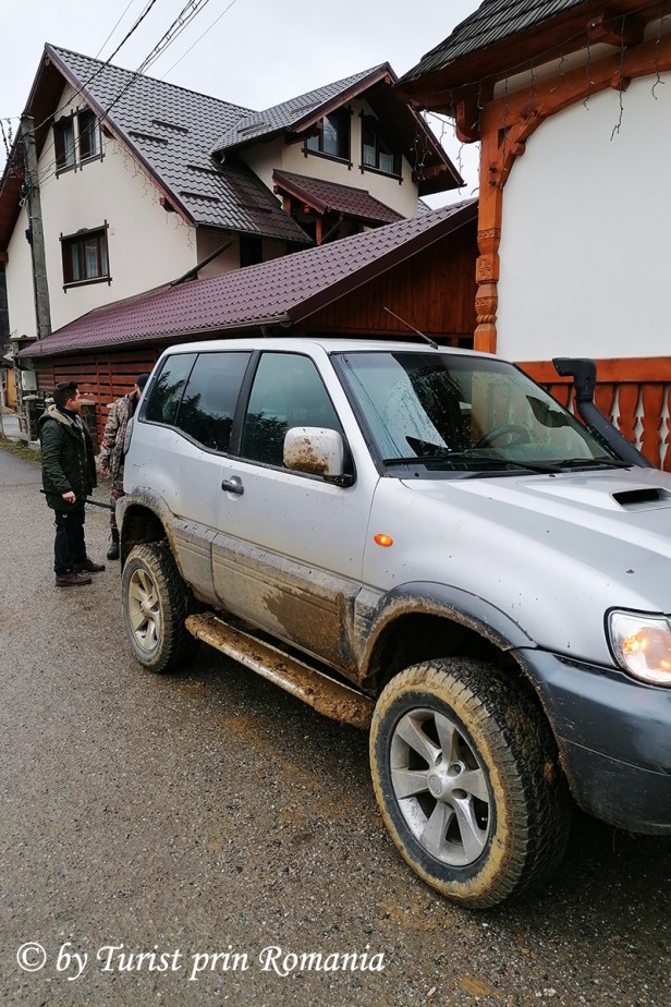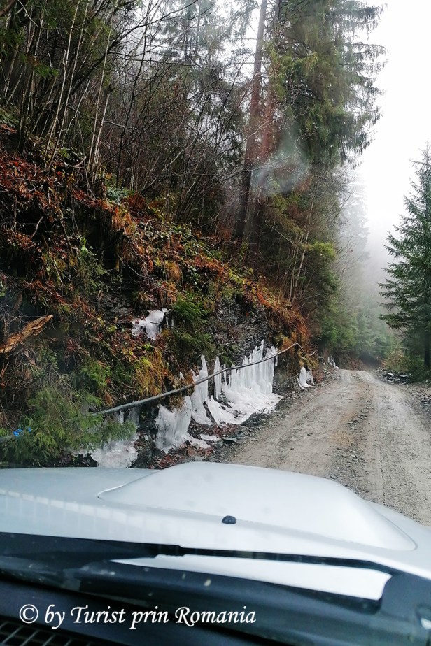 Călătoria a început într-o mașină de teren unde cu greu am încăput cu toții, dar efortul a fost încununat de o experiență absolut genială. Parte din drum a fost pe asfalt, dar adevărata aventură a început atunci când s-a terminat asfaltul și am început să dăm de petice de zăpadă și țurțuri imenși de gheață scurși pe versanții munților.