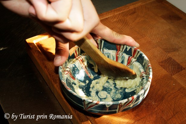 Pe lângă toate acestea mai adăugăm un mujdei de usturoi cu smântână și obținem un fel de mâncare perfect care se poate servi împreună cu o palincă de prune sau o afinată, tradiționale pentru Maramureș.