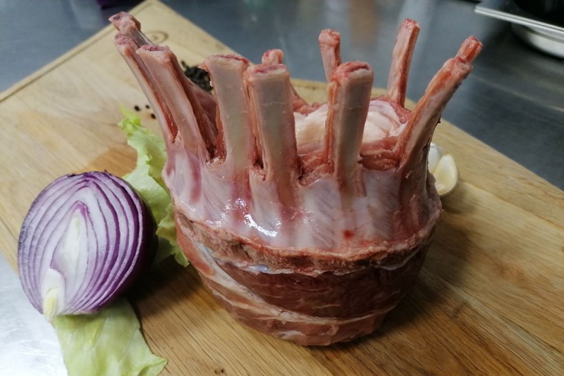 După 12 ore, chef Zsiga a scos carnea de baiț, a folosit un ac mare și a cusut coastele formând un cilindru în așa fel încât coastele să fie aranjate într-o formă ce sugerează o coroană regală.