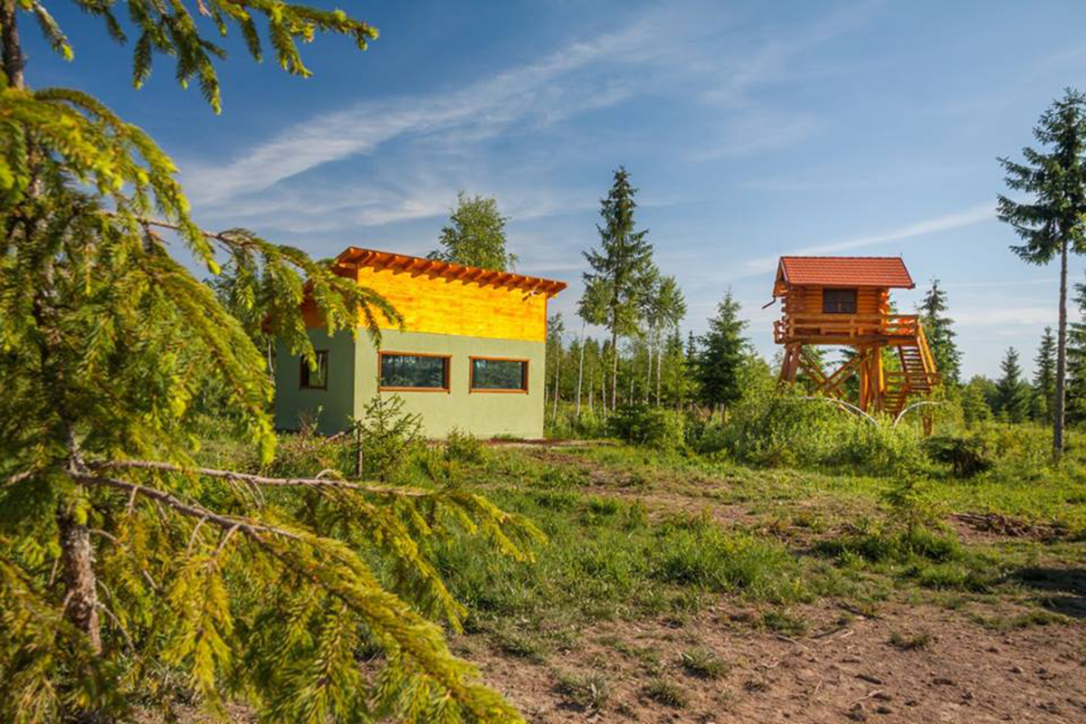 Cea de a doua clădire este un foișor la înălțime și are aceleași dotări de excepție, oferind o priveliște de ansamblu asupra locului de întâlnire al urșilor.
