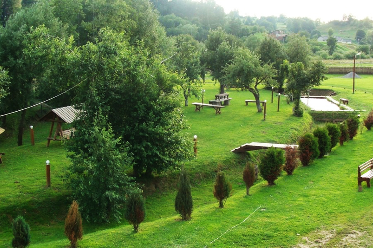 La prima vedere, din drum, pare o pensiune micuță, dar odată ce intri în parcare se dezvăluie privirilor imensitatea terenului, dar și posibilitățile de recreere disponibile. Chiar la intrare, se regăsește restaurantul rustic, din lemn masiv cu mesele frumos ordonate, care crează o ambianță plăcută, de intimitate și liniște. Aici, gazdele voastre vă servesc cu profesionalism preparate din bucătăria internațională, dar și din cea locală.
