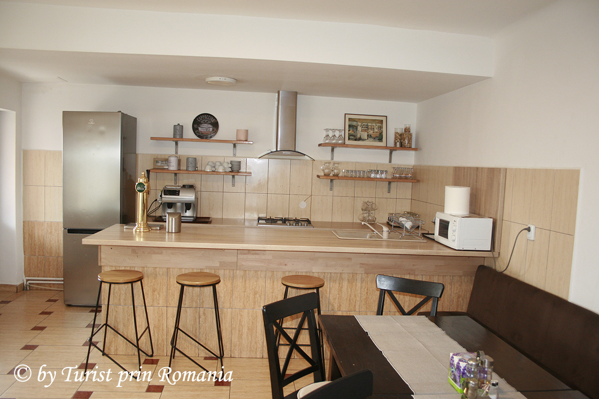 Alăturat de restaurant se regăsește corpul principal al Pensiunii La Moară, unde turiștii cazați au la dispoziție o bucătărie dotată cu toate accesoriile necesare petrecerii unui sejur complet.