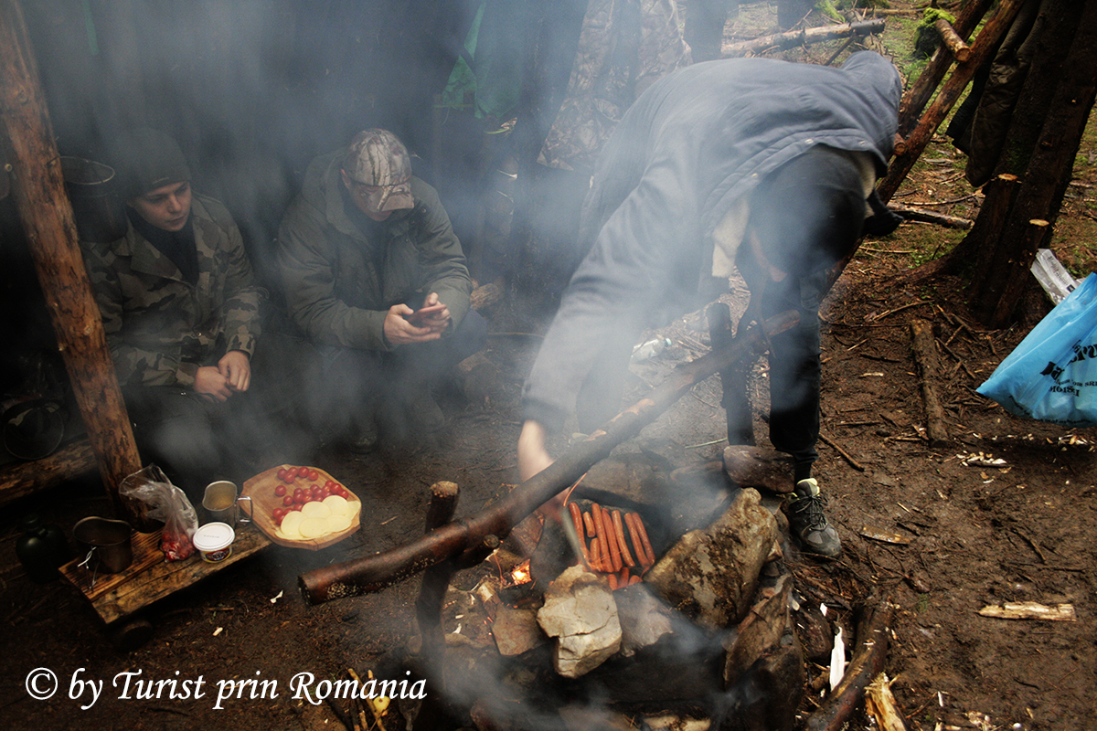 Așa se face că, după o tură în pădure am servit și ceva cârnați pe piatră cu roșii și brânză și am savurat un ceai de mentă canadiană asezonat perfect cu fumul dulce al lemnului de brad.