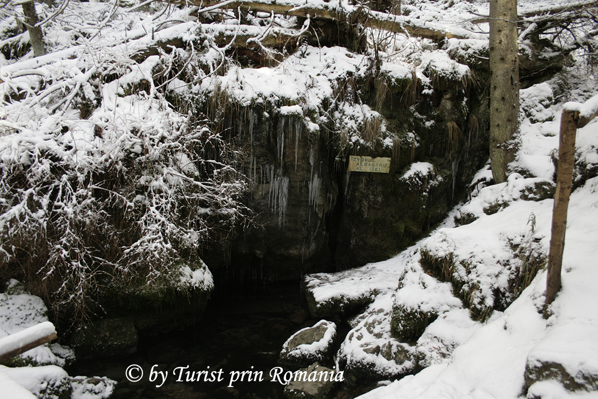 De la marcarea începutului ariei protejate mai sunt de mers aproximativ 200 de metri printr-un canion, de-a lungul Izei, până la niște stâncării de unde se poate obseva izbucnirea albastru verzuie a izvorului de sub imense blocuri șistoase cristaline.