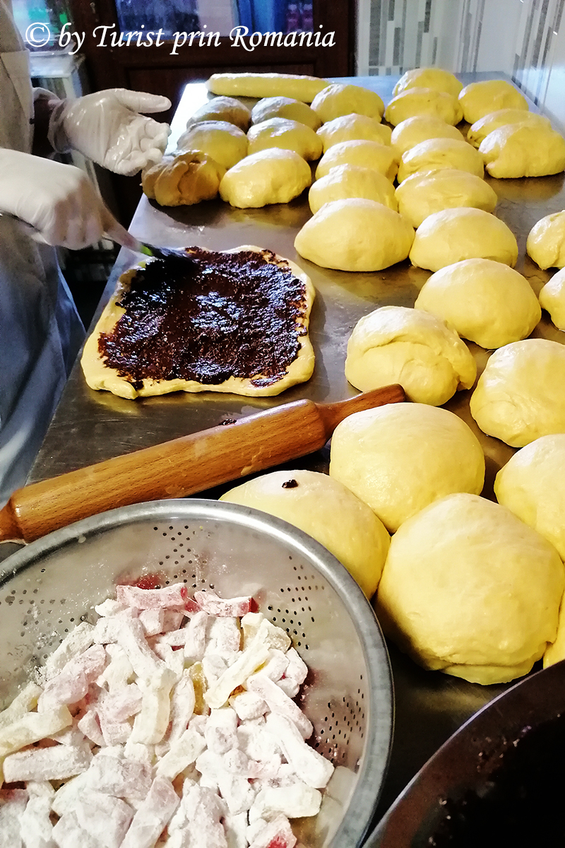 Odată intrat în bucătărie, un amestec de mirosuri aromate m-au învăluit, aducându-mi aminte de mirosurile prăjiturilor bunicii. Aici, mai multe doamne se ocupau cu măiestrie de prepararea prețiosului aluat pentru cozonac. Pe masă erau aranjate frumos, în boluri, ingredientele necesare pentru a fi încorporate.